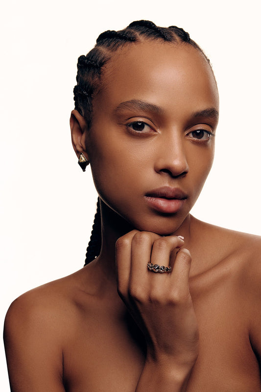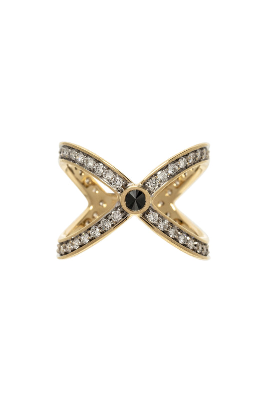Anel Polvo de diamantes negros invertidos com diamantes brown