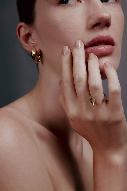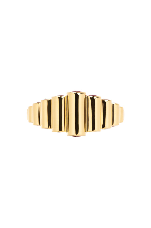 Anel River Chain de esmeraldas com diamantes brancos em ouro 18k amarelo