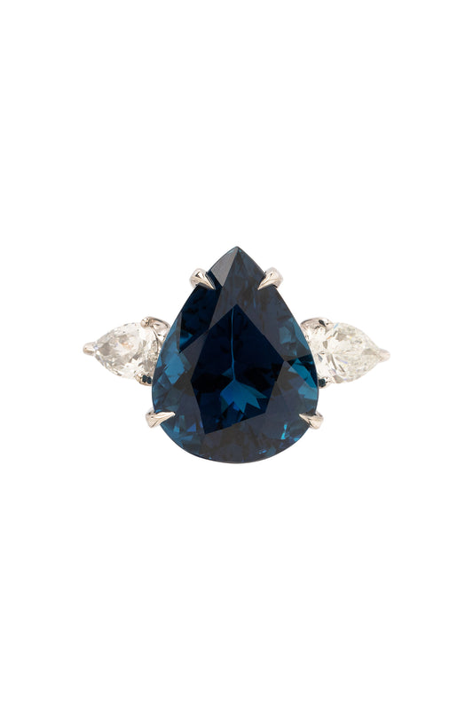 Anel de turmalina indicolita com diamantes brancos em ouro 18k branco