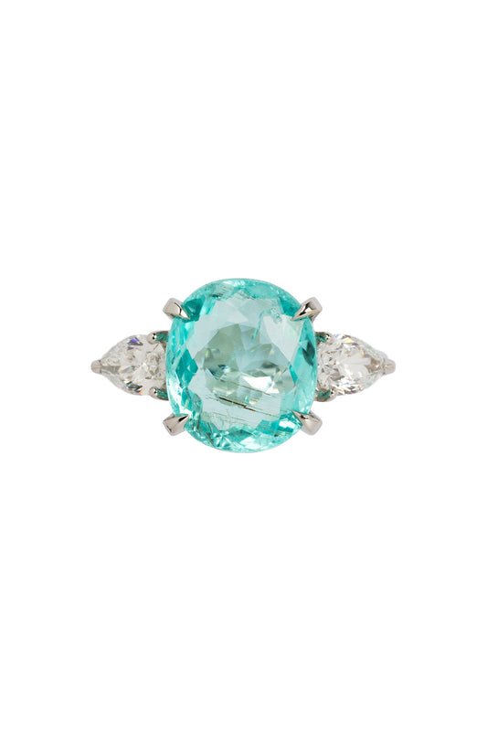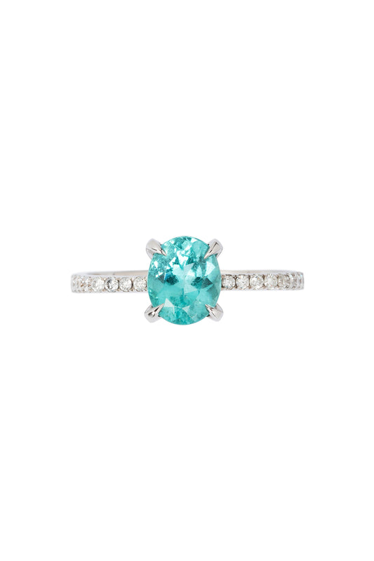 Anel de turmalina Paraíba com diamantes brancos em ouro 18k branco