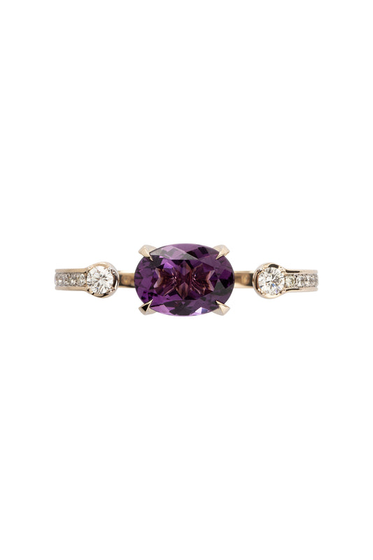 Anel Gravity de dois dedos de ametista com diamantes brancos em ouro 18k branco