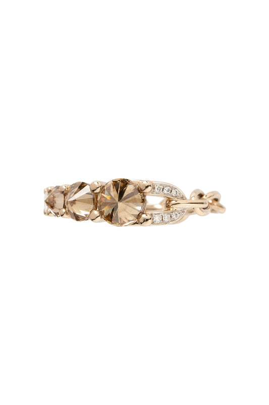 Anel River Chain de diamantes brown com diamantes brancos em ouro 18k branco