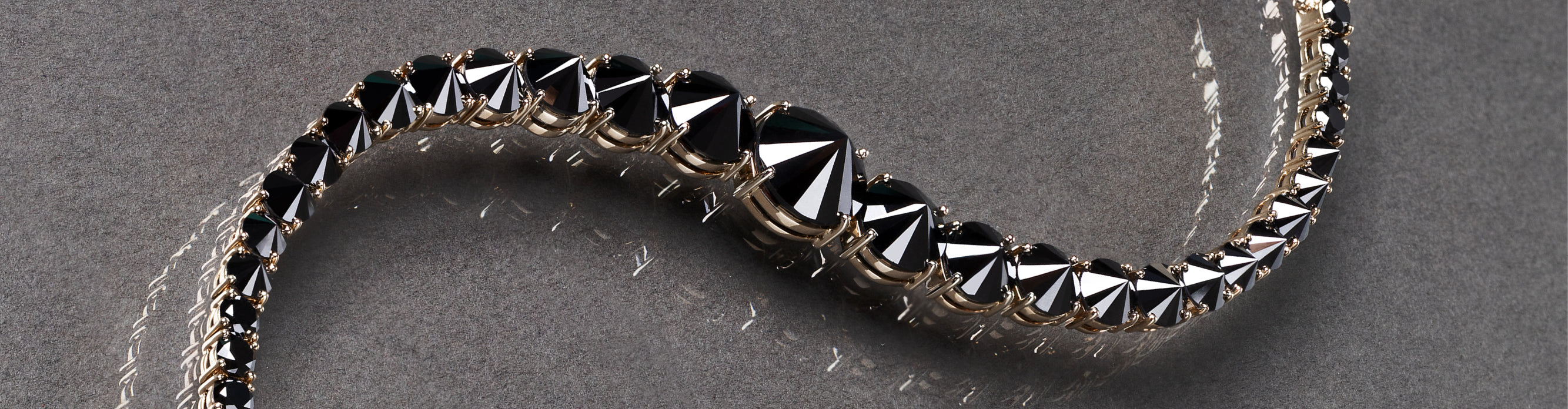 Anel de três dedos de diamantes negros invertidos com diamantes brancos